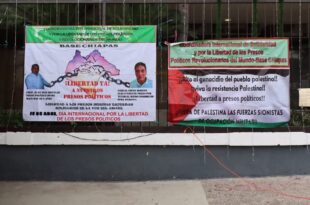 Rodolfo Flores. 19 de diciembre del 2024. Tuxtla Gutiérrez. – La Coordinadora Internacional de Solidaridad y por la Libertad de los Presos Políticos Revolucionarios del Mundo-Base México inició un plantón en el centro de Tuxtla para exigir la liberación de Juan Diaz Montejo, quien es miembro del Frente Democrático Revolucionario …
