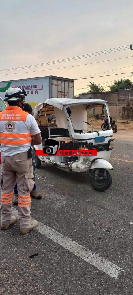 Agencia ReporteCiudano, 17 de noviembre del 2024. Tuxtla Gutiérrez. – Este domingo por la tarde se registró un fuerte accidente entre un mototaxi y un vehículo particular en el municipio de Ocozocoautla.