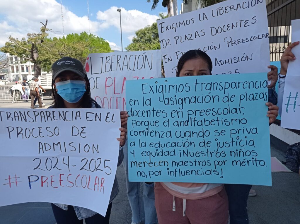 “Nosotras somos maestras de educación preescolar, y pedimos que se nos otorguen las plazas docentes, ya que, hasta el momento han otorgado 90 plazas hasta el momento, y el año anterior en este mismo periodo habían entregado un número mayor”, manifestaron.