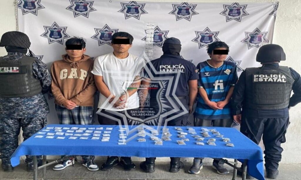 Debido a la situación, se solicitaron refuerzos y unidades adicionales llegaron al lugar para asegurar a los otros dos sujetos. Tras realizarles una inspección corporal, se encontraron entre sus pertenencias varias sustancias ilícitas. Los tres detenidos fueron identificados como Ricardo N., de 25 años, originario de San Cristóbal de las Casas; Víctor Manuel N., de 26 años, de Tuxtla Gutiérrez; y Juan N., de 24 años, también originario de San Cristóbal de las Casas.