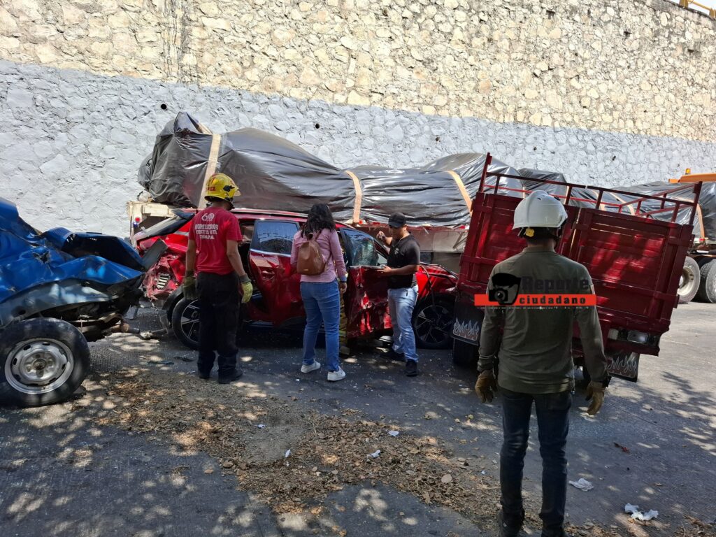 Agencia ReporteCiudano, 14 de febrero del 2025.- Este viernes un tráiler de color amarillo Kenworth que era conducido por Servando N presentó una falla en los frenos embistió 12 automóviles y dejó 17 personas heridas.