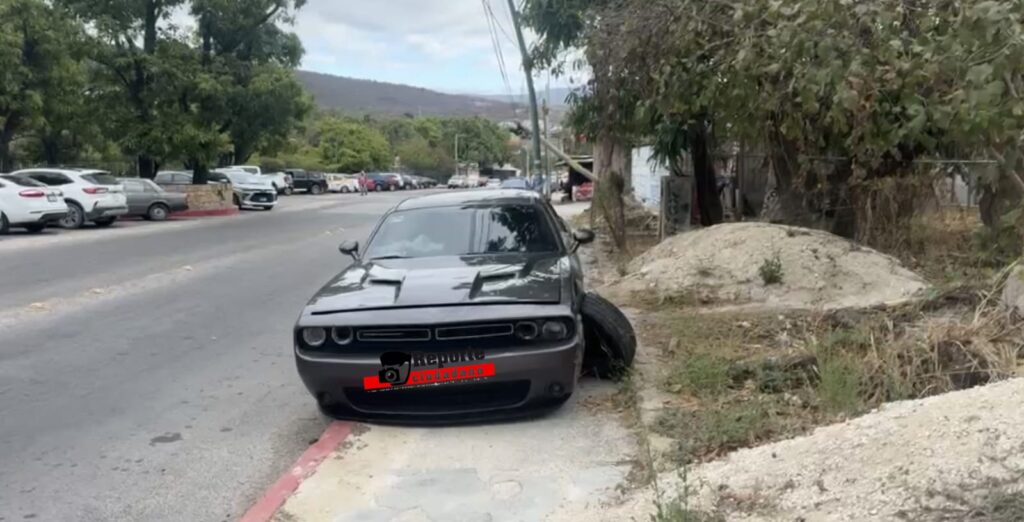 Agencia ReporteCiudano, 23 de febrero del 2025. Tuxtla Gutiérrez. – Este domingo por la mañana un auto deportivo Dodge Charger de color negro se impactó contra dos postes cuando circulaba sobre el Bulevar Antonio Pariente Algarín frente al estacionamiento de Caña Hueca.