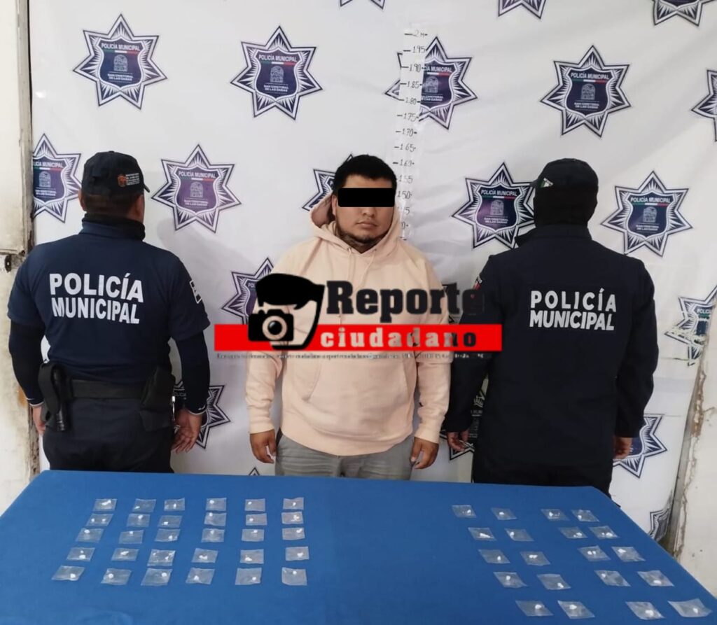 Los hechos ocurrieron en el estacionamiento del banco Santander, donde ciudadanos alertaron a las autoridades sobre la presencia de un sujeto ofreciendo drogas. De inmediato, los agentes ubicaron al individuo, quien intentaba abordar una motocicleta Yamaha de color negro. Tras interceptarlo, se le explicó el motivo de la intervención y se procedió a una inspección de rutina.