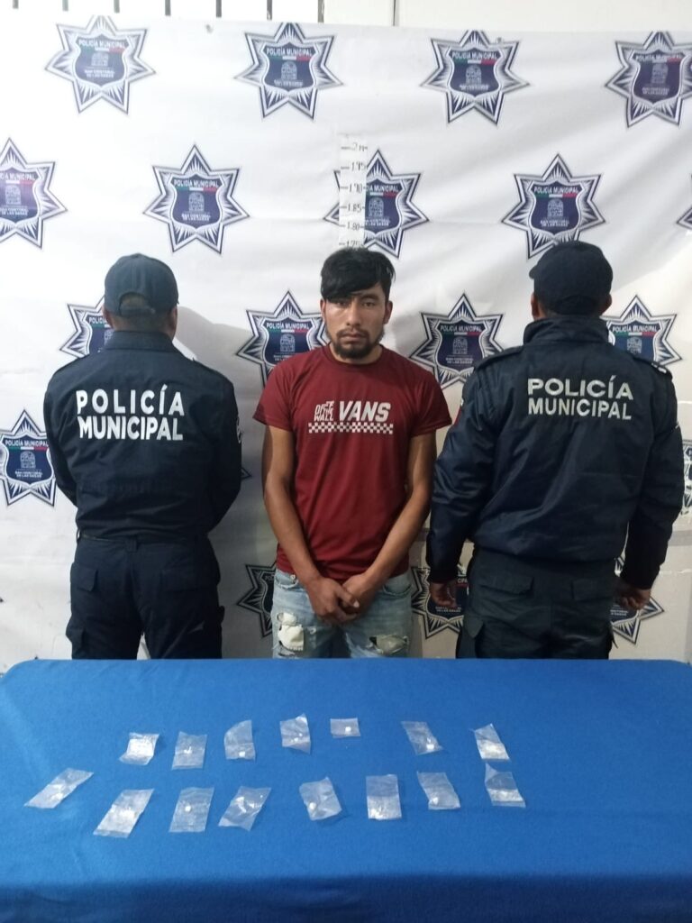 El detenido, identificado como Alejandro “N”, de 28 años y originario de la comunidad San Antonio Los Baños, tenía consigo 15 bolsas de nylon que contenían un polvo blanco con características similares a la cocaína.