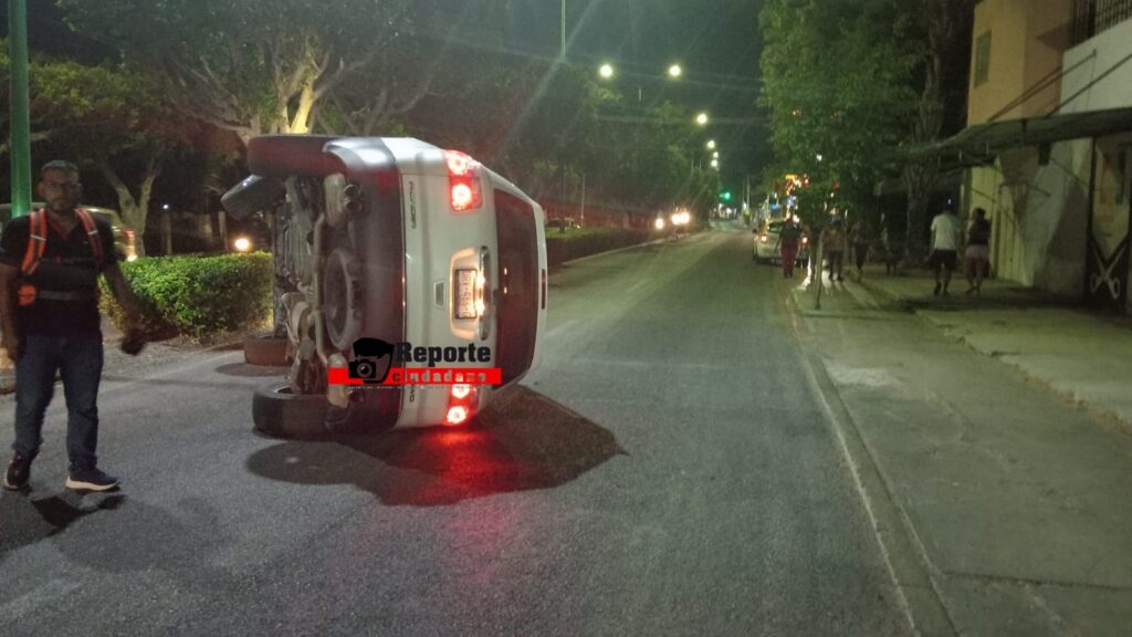 De acuerdo con los reportes oficiales, este hecho ocurrió cuando la conductora circulaba de Norte a Sur y de manera repentina perdió el control por el exceso de velocidad y terminó con las llantas hacia arriba.