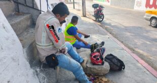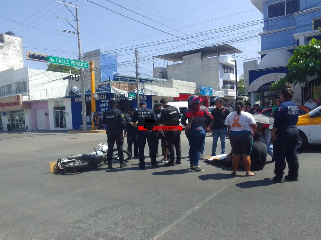 Agencia ReporteCiudadano, 21 de marzo del 2025. Tuxtla Gutiérrez.- Un motociclista atropelló a una mujer a la altura de la 9a Sur y 4a Poniente de Tuxtla Gutiérrez.
