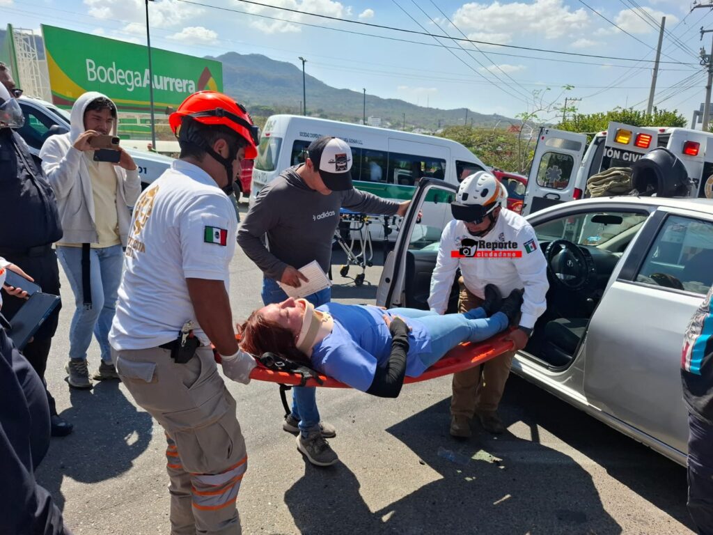Al lugar arribaron paramédicos de Protección Civil Municipal y trasladaron a la conductora del coche.