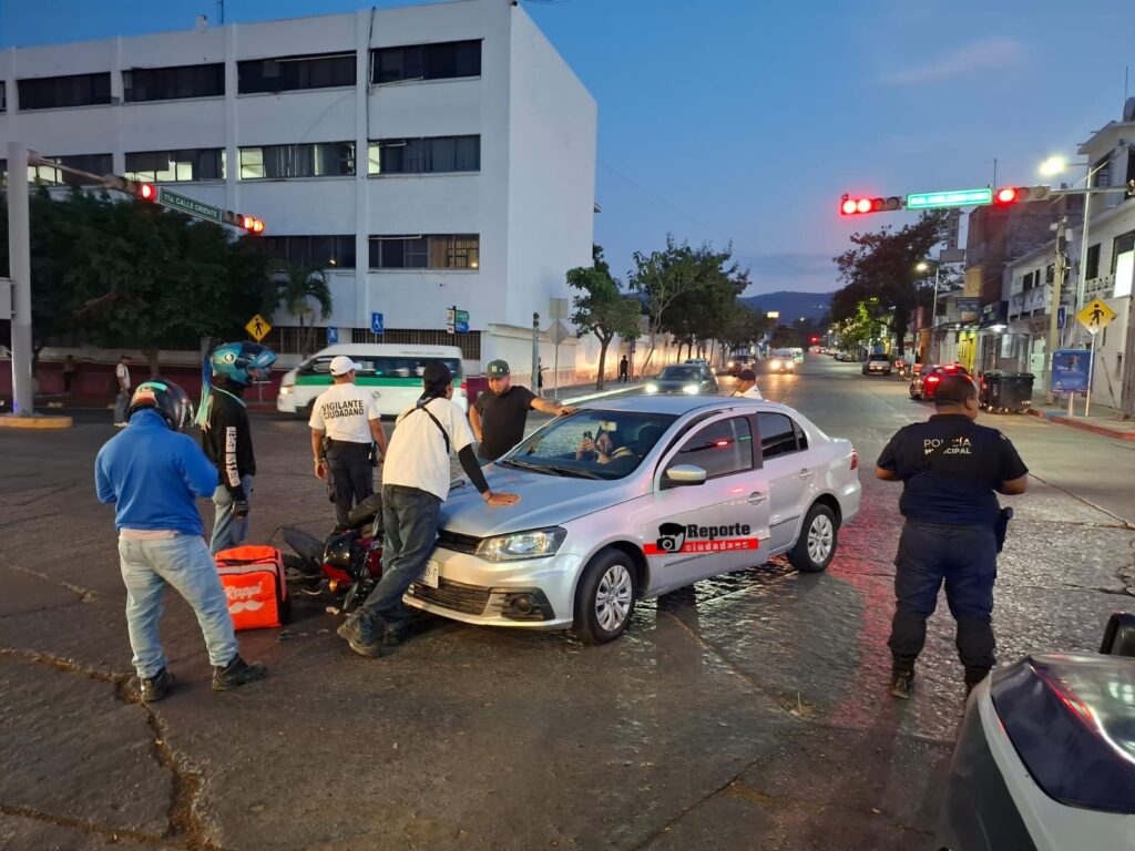 Agencia ReporteCiudadano, 24 de marzo del 2025. Tuxtla Gutiérrez.- Este lunes por la tarde noche un motociclista y el conductor de un Volkswagen Vento chocaron sobre la Avenida Central y 11 Oriente.