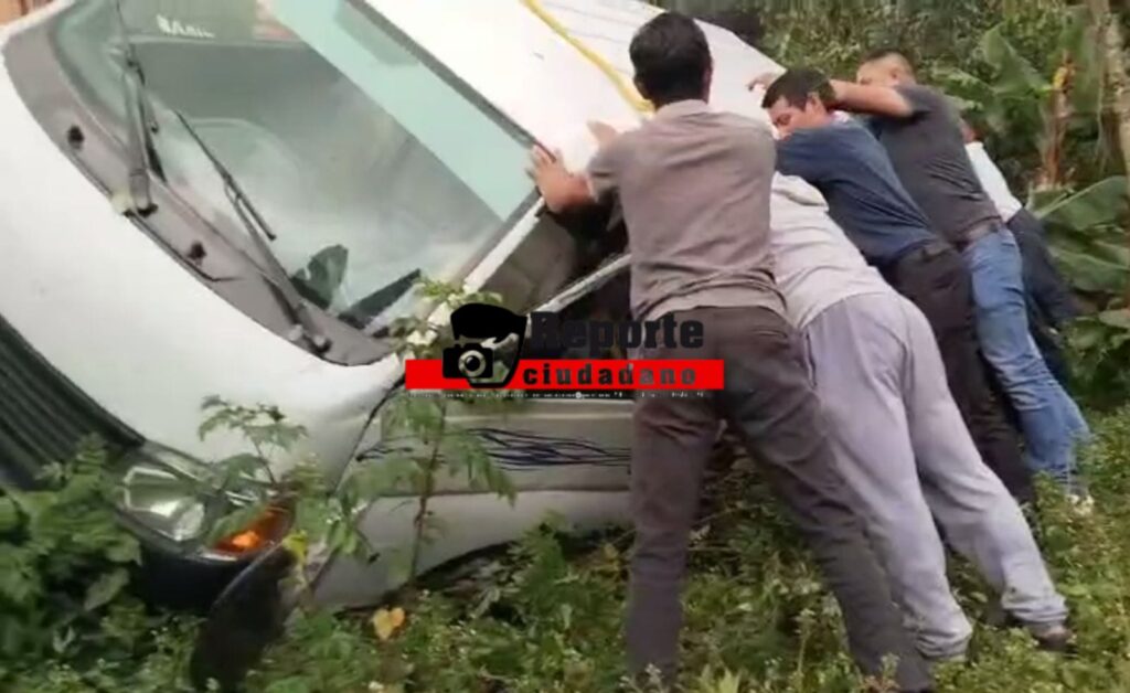 Pobladores de la zona acudieron de inmediato al lugar del accidente y brindaron apoyo al conductor para rescatar la unidad, que quedó volcada entre la maleza. Gracias a la rápida intervención de los lugareños, fue posible evitar una situación de mayor riesgo.