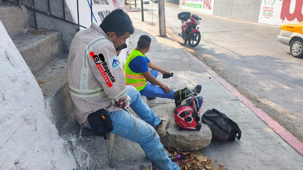 Agencia ReporteCiudadano, 21 de abril del 2025. Tuxtla Gutiérrez.- Un motociclista fue colisionado este lunes por la mañana cuando circulaba sobre el Libramiento Norte entre 5a Poniente y la Unicach.