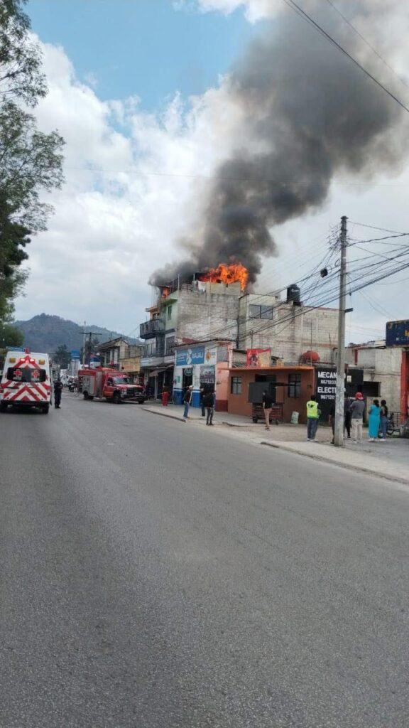 San Cristóbal de Las Casas, 29 de abril de 2025.– La tarde de este lunes, elementos de auxilio atendieron el reporte de un incendio en una casa habitación ubicada en el Boulevard N.-06, del barrio de San Antonio, donde, al llegar, observaron fuego activo en el tercer piso del inmueble, el cual funcionaba como cocina de leña y estaba construido con materiales rústicos como madera y láminas, lo que facilitó la propagación del fuego.