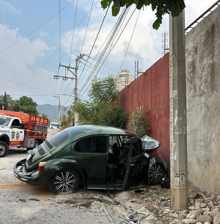 Tuxtla Gutiérrez. Hace unos momentos un sujeto que manejaba un vehículo marca Volkswagen tipo bocho se impactó contra una barda de una vivienda en la colonia Potinaspak segunda Sección de la capital
