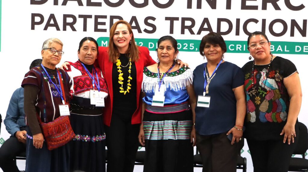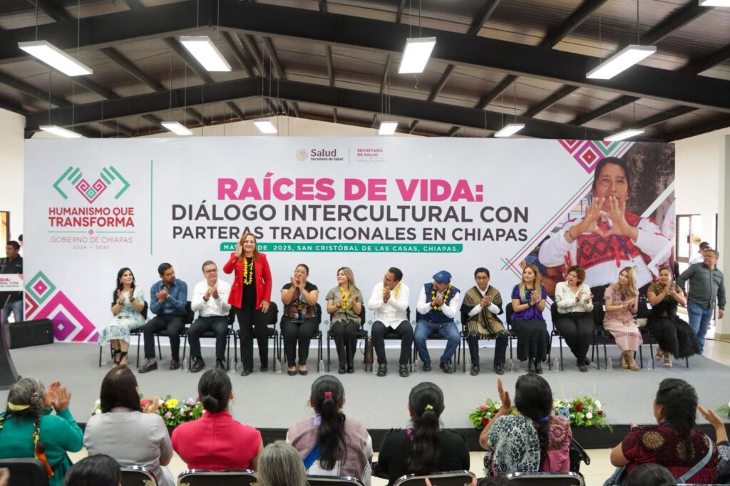 San Cristóbal de Las Casas, 12 de mayo de 2025. – La presidenta municipal de San Cristóbal de Las Casas, Mtra. Fabiola Ricci Diestel, acompañó al gobernador de Chiapas, Dr. Eduardo Ramírez Aguilar, quien encabezó el evento “Raíces de Vida: Diálogo Intercultural con Parteras Tradicionales de Chiapas”, donde se destacó el papel fundamental de las parteras en la atención a las mujeres de las comunidades.