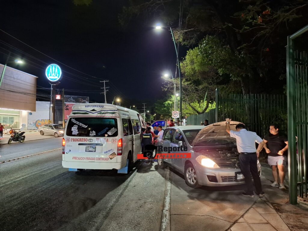 20 de mayo del 2025. Tuxtla Gutiérrez.- Este martes por la noche se registró un aparatoso accidente de tránsito entre un colectivo de la ruta San Fernando-Tuxtla y un Coche Tiida de color gris sobre la prolongación de la 5a Norte, justo en una de las entradas del Parque Caña Hueca.