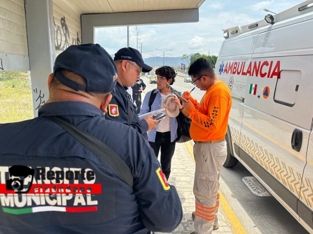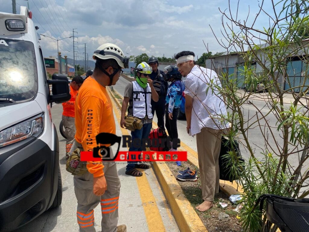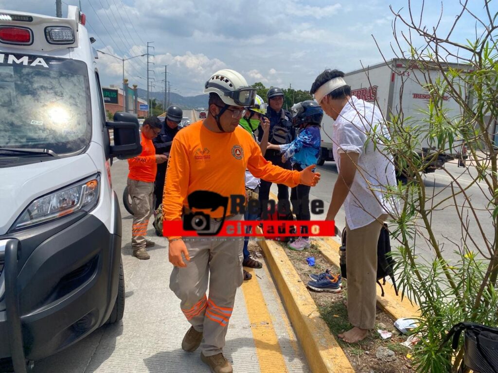El conductor de la moto fue atendido por paramédicos de Protección Civil y trasladado a un nosocomio para su atención médica especializada.