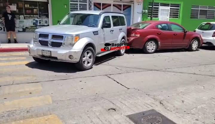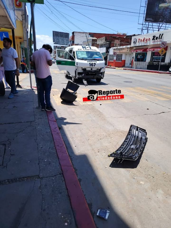 Al parecer la unidad particular no respetó la preferencia e impactó a la pasajera, posteriormente giró y chocó contra un vehículo de color rojo estacionado.