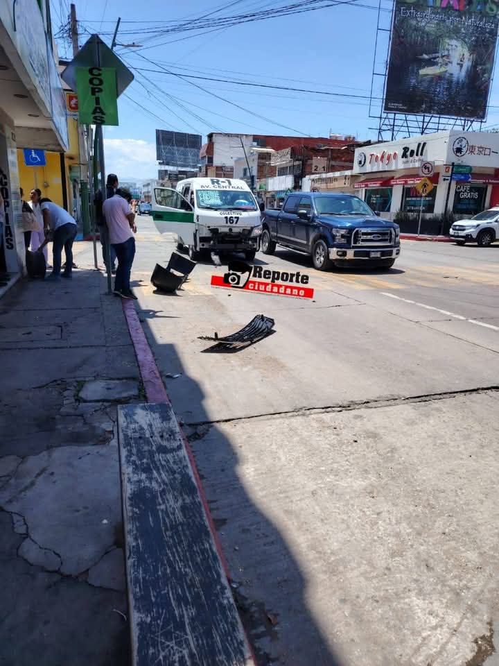 4 de junio del 2025. Tuxtla Gutiérrez. Una camioneta marca dodge de color gris y una urvan de la marca nissan de la ruta 1 con número económico 67 protagonizaron un accidente la mañana de este miércoles sobre la avenida central y esquina de la 9 oriente de esta localidad.