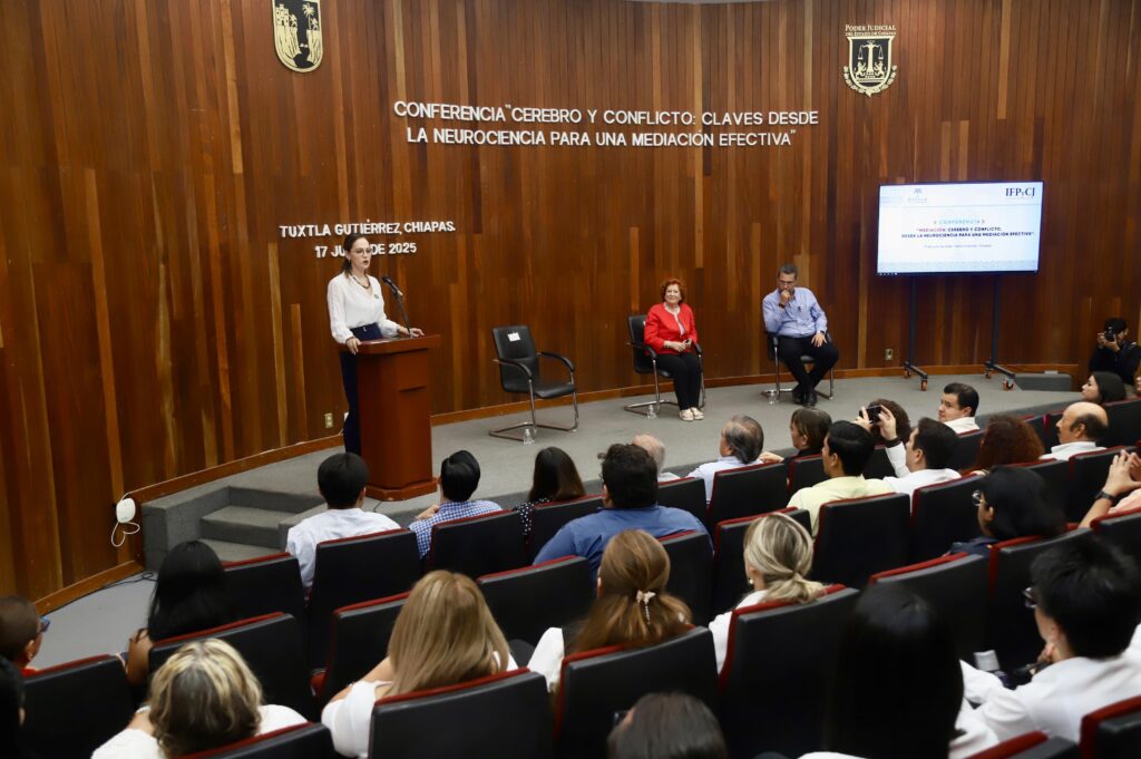Con el objetivo de seguir robusteciendo las estrategias de mediación y fomentar una comunicación empática y efectiva en la resolución de conflictos, el Poder Judicial del Estado de Chiapas realizó la conferencia “Cerebro y Conflicto: Claves desde la Neurociencia para una Mediación Efectiva”, impartida por la especialista Mari Luz Sánchez García – Arista.