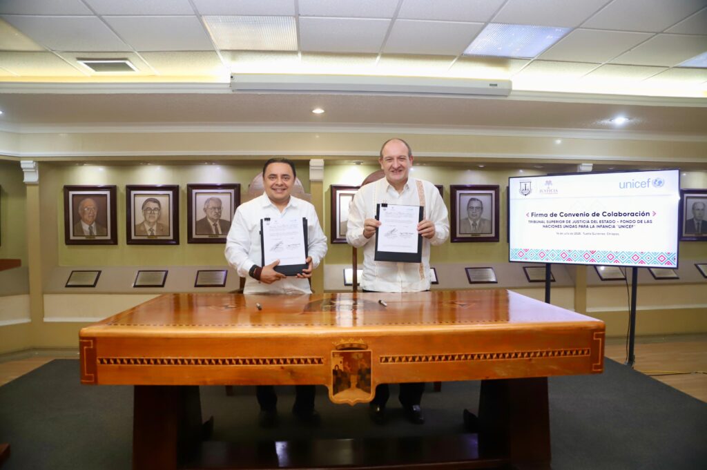 14 de julio del 2025. – El Poder Judicial del Estado de Chiapas y el Fondo de las Naciones Unidas para la Infancia (Unicef) firmaron un importante convenio de colaboración, que renueva el compromiso y fortalece la justicia especializada en favor de la infancia y adolescencia chiapaneca.