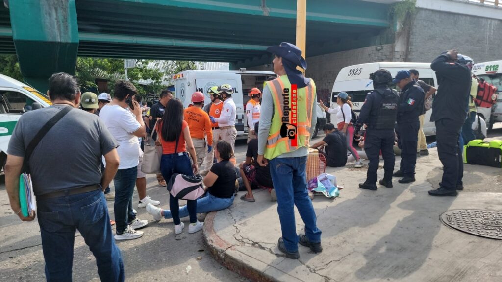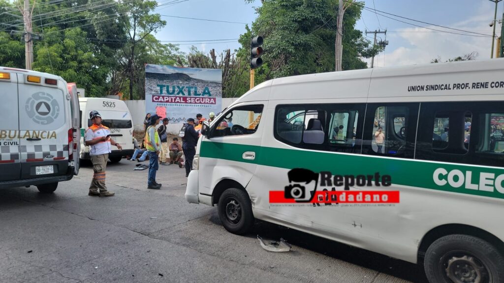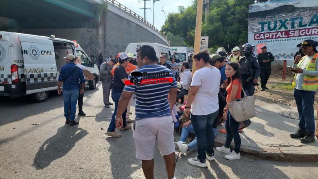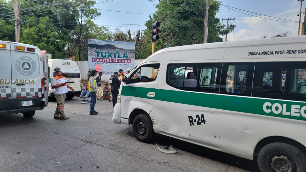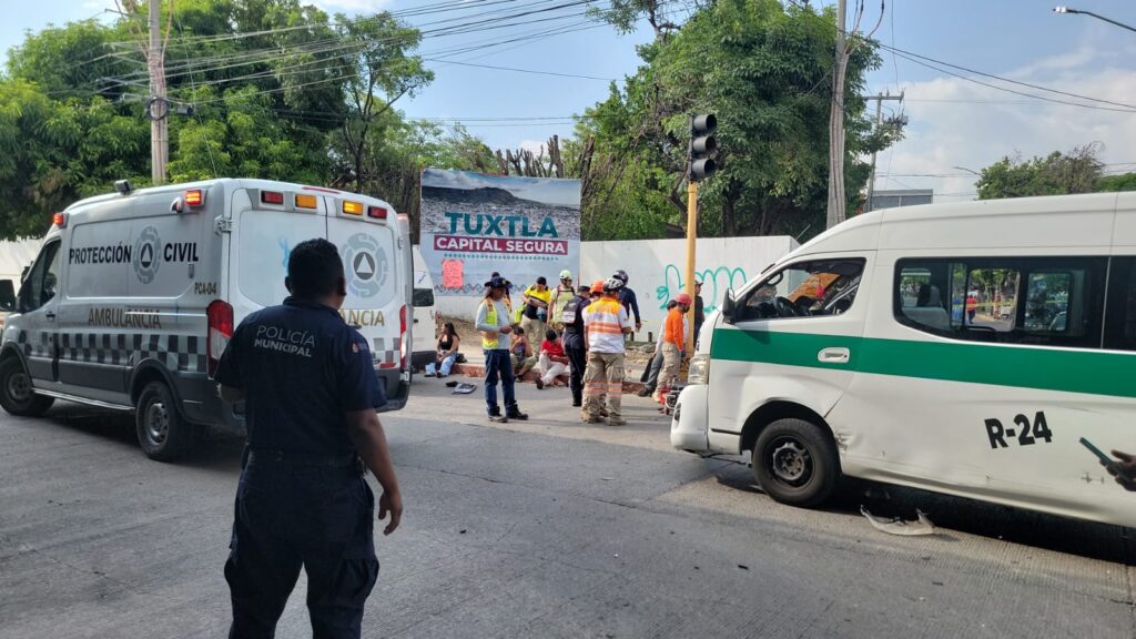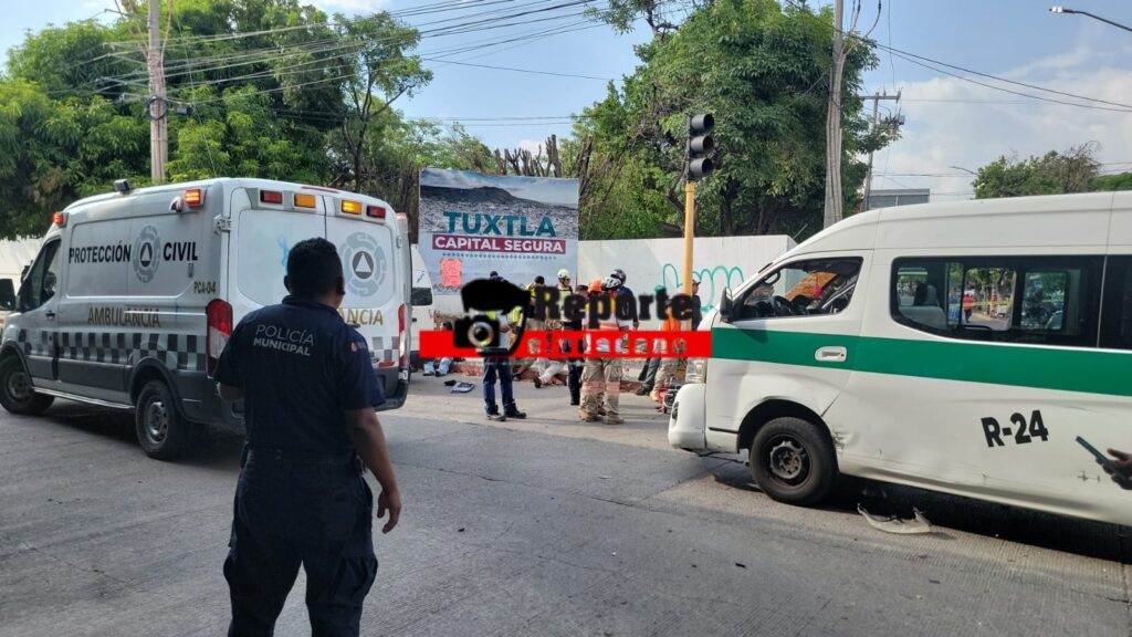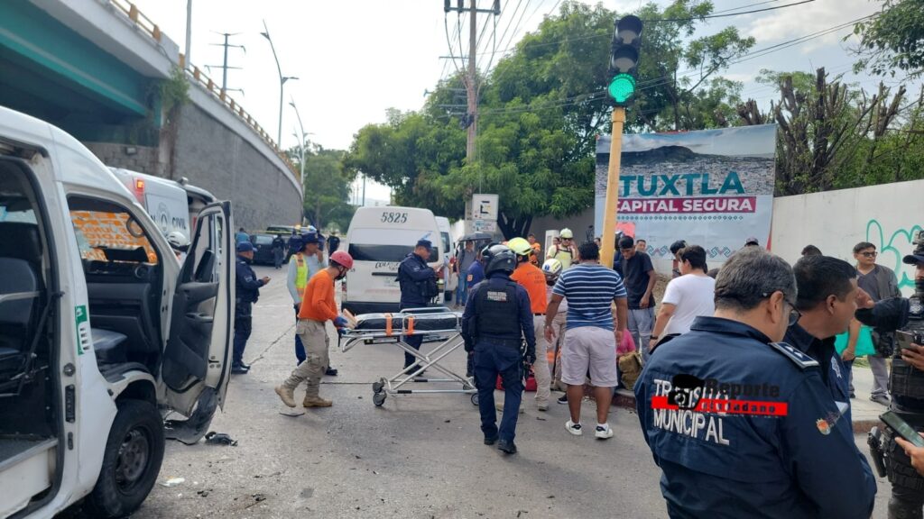 17 de julio del 2025. Tuxtla Gutiérrez.- Este jueves por la tarde se registró un fuerte accidente de tránsito entre tres unidades de transporte público en el Libramiento Norte a la altura del Bulevar Fidel Velázquez dejando un saldo de 21 lesionados.
