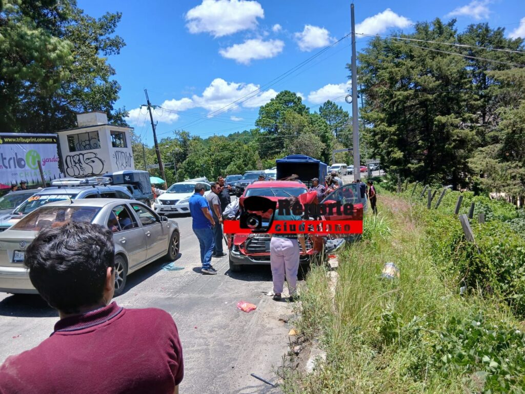 17 de julio del 2025. San Cristóbal de Las Casas.– Un aparatoso accidente de tránsito registrado en el crucero de San Pablo, sobre la carretera que conecta San Cristóbal de Las Casas con Teopisca, dejó como saldo preliminar al menos tres personas lesionadas y provocó un severo congestionamiento vehicular en la zona.
