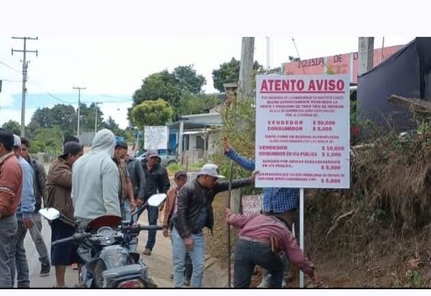 Los acuerdos, tomados por usos y costumbres, también establecen multas para otras conductas: 10 mil pesos al vendedor de bebidas alcohólicas y mil al consumidor en vía pública, así como 5 mil pesos por realizar necesidades fisiológicas o causar disturbios en estado de ebriedad. Un anuncio colocado en la carretera hacia la comunidad de Bautista Chico informa a la población sobre estas sanciones.
