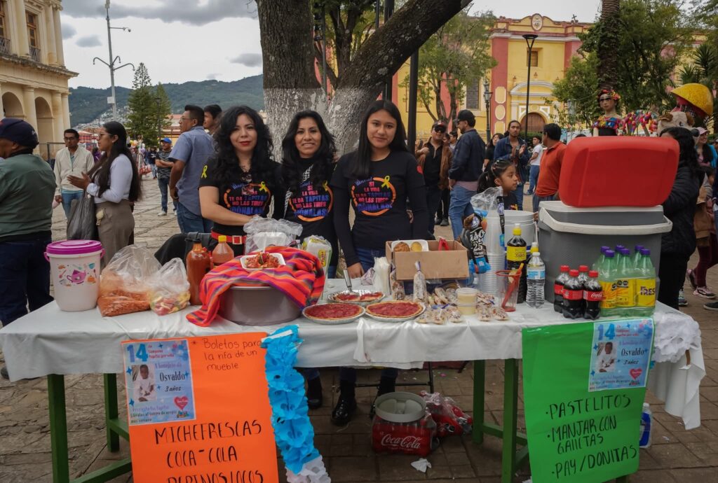 27 de julio del 2025. San Cristóbal de Las Casas.- Este domingo se llevó a cabo una kermés solidaria en la Plaza de la Paz de San Cristóbal de Las Casas, con el propósito de recaudar fondos y recolectar tapitas de plástico en beneficio de Osvaldo, un niño de tres años originario de La Trinitaria, Chiapas, que actualmente enfrenta un tratamiento contra el cáncer.