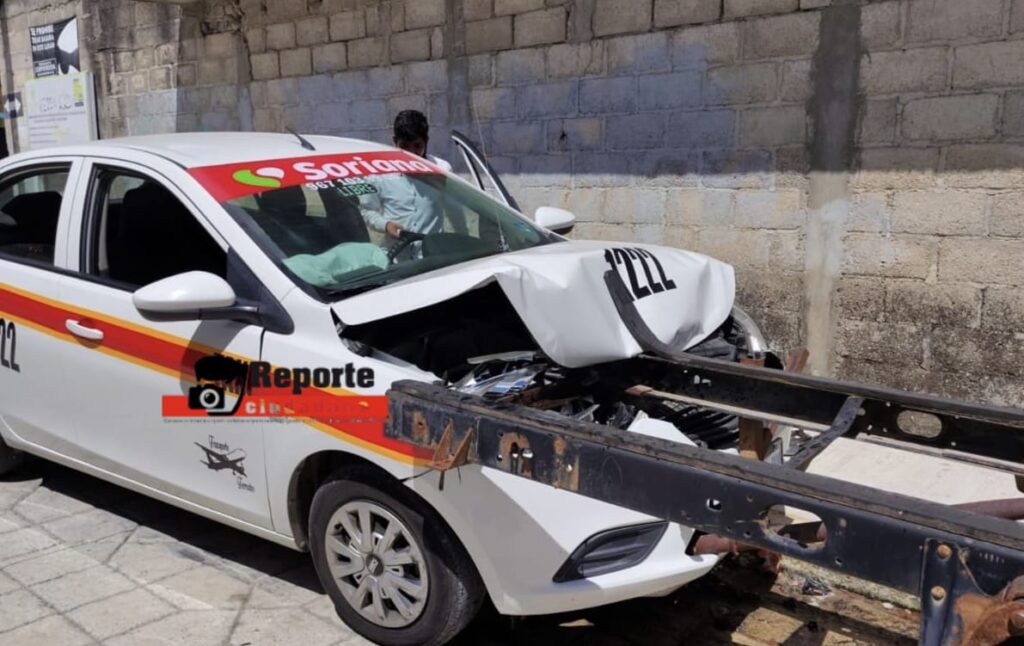 17 de agosto del 2025. San Cristóbal de Las Casas.– Un taxi con número económico 1222 protagonizó un accidente al impactarse en la parte trasera de un camión que se encontraba estacionado en el barrio San Juan de los Lagos.