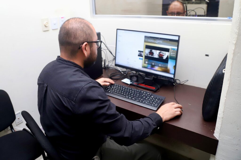 En este marco, el magistrado presidente Juan Carlos Moreno Guillén realizó un recorrido por la Sala Demo para Audiencias Orales en materia Familiar, donde constató los avances tanto en las adecuaciones a los espacios como en el rubro de capacitación, con la demostración de una audiencia oral videograbada en la que participó personal de los juzgados.
