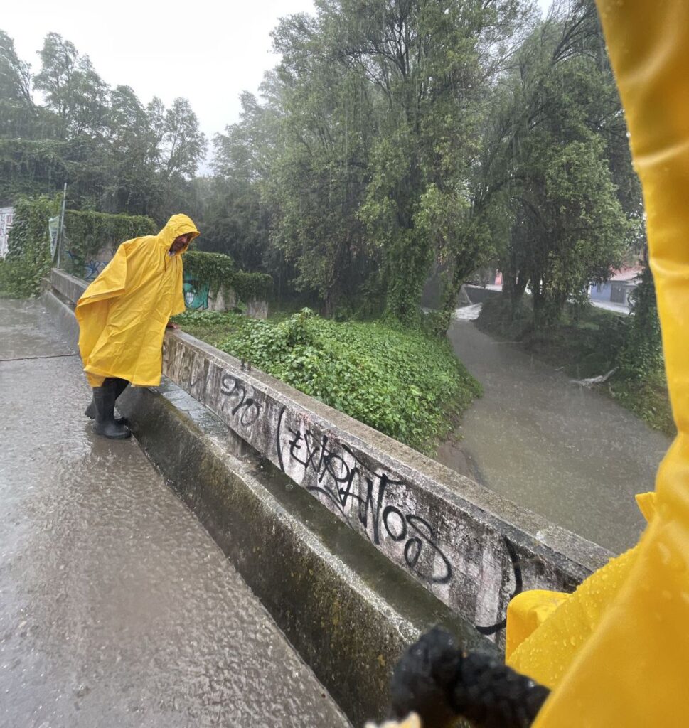San Cristóbal de Las Casas, 22 de agosto de 2025.- Elementos de Protección Civil Municipal realizaron recorridos de verificación en ríos, arroyos y zonas vulnerables de la ciudad, tras la intensa lluvia registrada esta tarde. El operativo se llevó a cabo aproximadamente a las 15:30 horas para supervisar la capacidad de los cauces y posibles encharcamientos.
