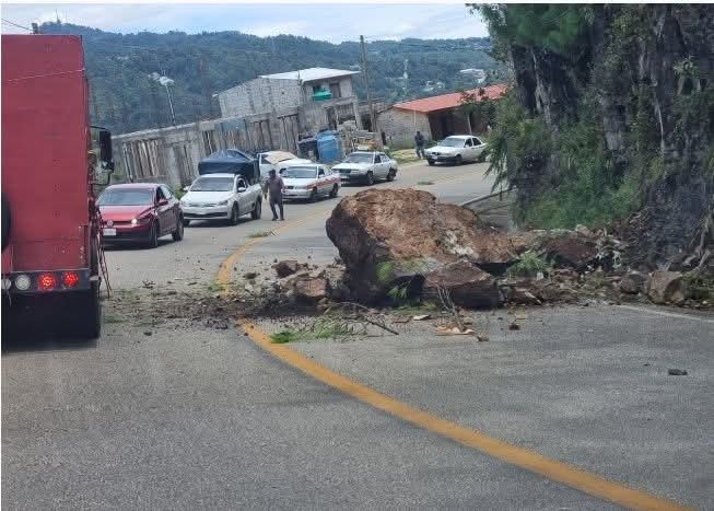 En el tramo estatal que conecta Zinacantán con San Juan Chamula, enormes piedras se deslizaron de los cerros y bloquearon uno de los carriles, afectando el tránsito hacia estas comunidades tsotsiles. Hasta el momento, la vía permanece con obstrucciones sin que lleguen cuadrillas oficiales para el retiro del material.