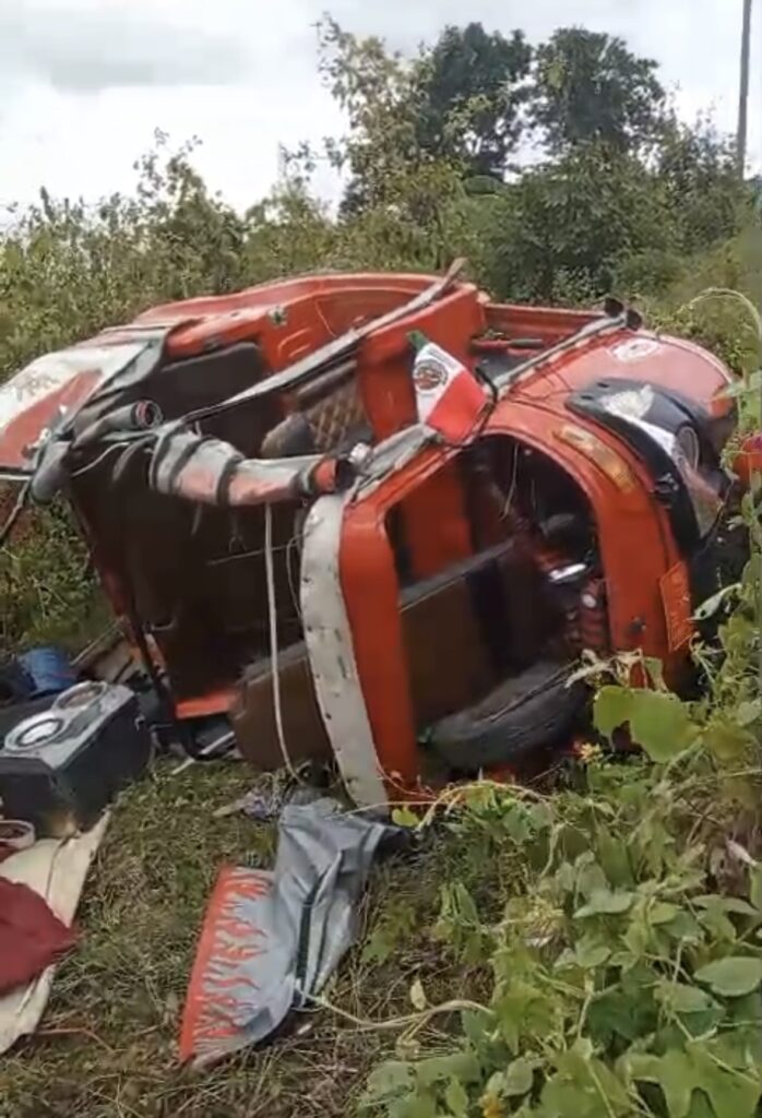 12 de septiembre del 2025. Chenalhó.- En la comunidad de Tijera Ch’ixilton, un moto-taxi terminó en el fondo de un barranco luego de que su conductor perdiera el control de la unidad, presuntamente debido al exceso de velocidad con el que circulaba.