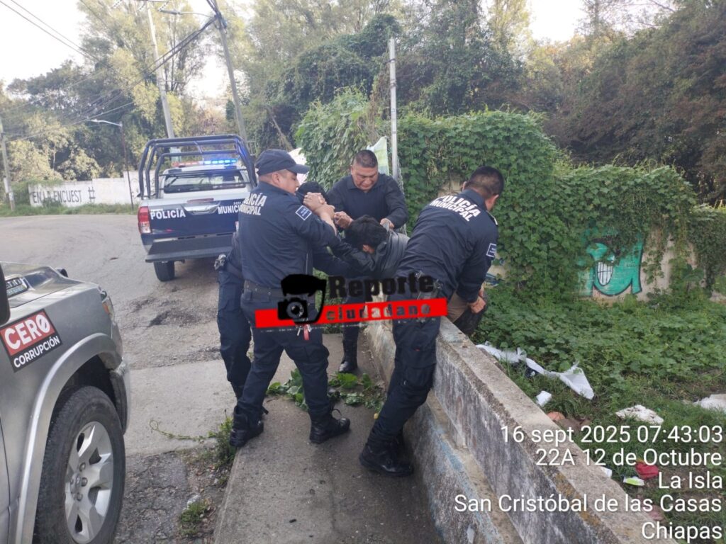 San Cristóbal de Las Casas.- Elementos de la Dirección de la Policía Municipal actuaron de manera oportuna tras el reporte emitido por el C5 Escudo Pakal sobre la presencia de una persona en el río ubicado sobre la avenida Insurgentes. Al arribar al lugar, los oficiales localizaron a un joven dentro del afluente y procedieron de inmediato a ponerlo a salvo sobre la cinta asfáltica.