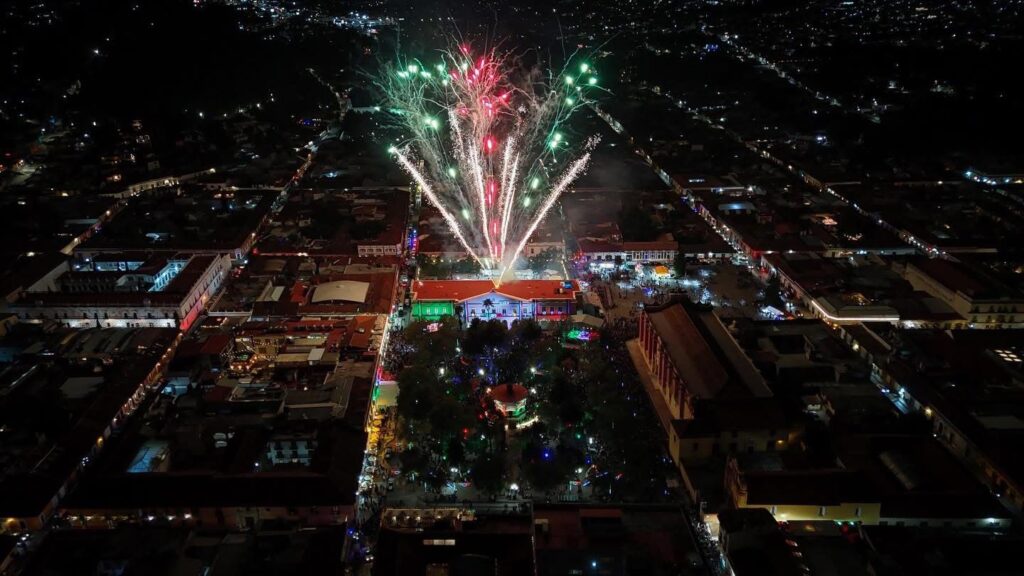 San Cristóbal de Las Casas, 15 de septiembre de 2025.– Ante una multitud de más de 20 mil personas, la presidenta municipal, Mtra. Fabiola Ricci Diestel, encabezó la ceremonia del 215 Aniversario del Grito de Independencia de México, desde el balcón del Museo de San Cristóbal, antes Palacio Municipal, ondeando la bandera nacional y repicando las campanas en honor a los héroes que nos dieron patria.