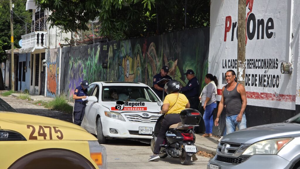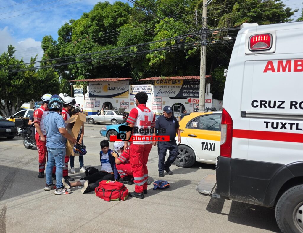 Agencia ReporteCiudadano, 23 de septiembre del 2025. Tuxtla Gutiérrez.- Este martes por la mañana se registró un accidente de tránsito entre un automóvil Toyota Corolla y una motocicleta en la Calzada al Sumidero y 12 Norte.