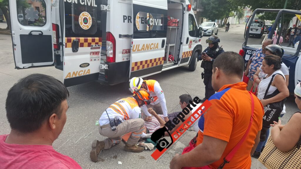 Agencia ReporteCiudadano, 28 de septiembre del 2025. Tuxtla Gutiérrez.- Este domingo por la mañana sobre la Cuarta Sur y 12 Oriente del Barrio Santa Cruz fue atropellado un adulto mayor por un motorrepartidor de tortillas.