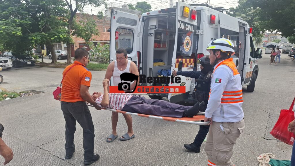 Paramédicos de Protección Civil prestaron los servicios prehospitalarios al adulto mayor que resultó con diferentes contusiones.