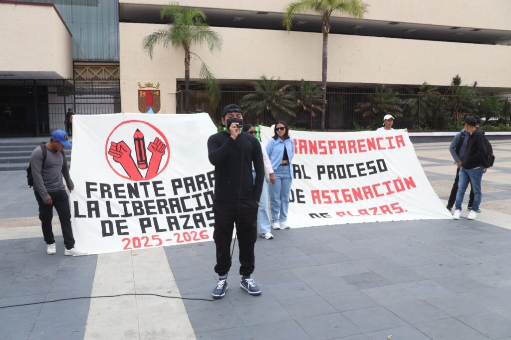 Los manifestantes argumentaron que el proceso de contratación más reciente no se apego a los criterios establecidos en la convocatoria oficial.