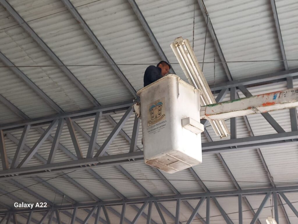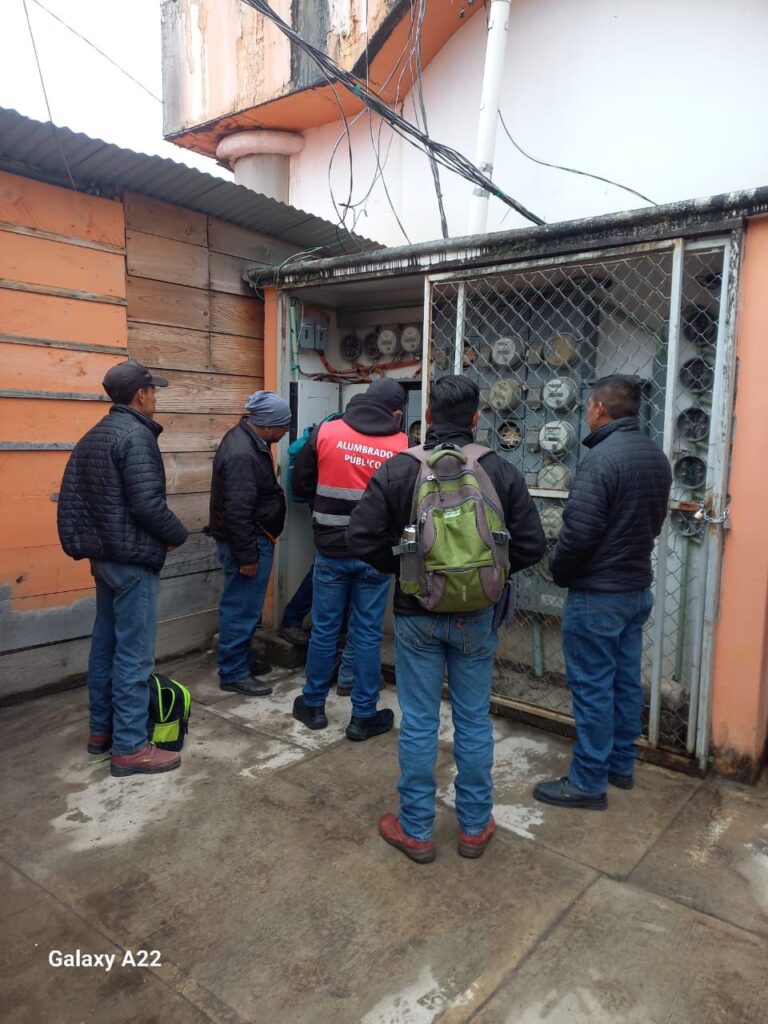 San Cristóbal de Las Casas, Chis., 16 de octubre de 2025.– Personal de la Dirección de Alumbrado Público realizó este jueves una jornada de mantenimiento en el Mercado del Norte (Merponorte), donde locatarios habían denunciado fallas constantes en la iluminación.