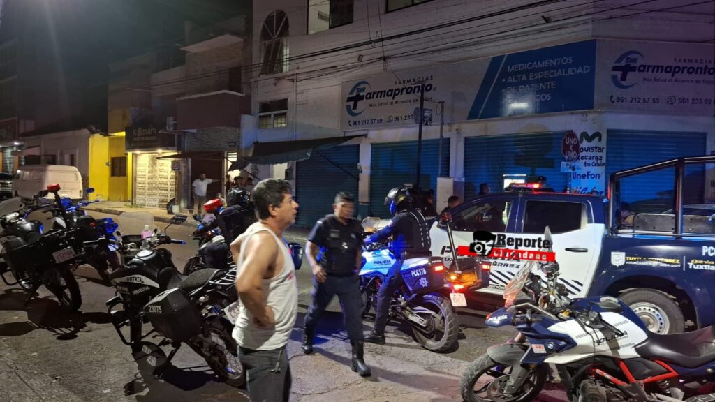 Agencia ReporteCiudadano, 21 de octubre del 2025. Tuxtla Gutiérrez.- Este martes por la noche dos sujetos asaltaron una farmacia ubicada en la Sexta Sur y Tercera Poniente del Barrio San Pascualito.