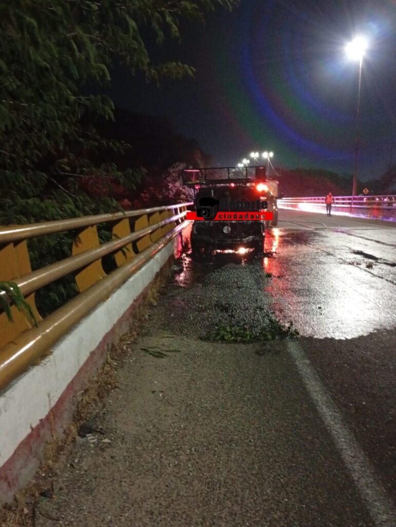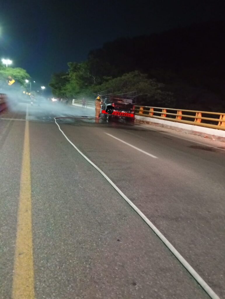 Agencia ReporteCiudadano, 17 de noviembre del 2025. Tuxtla Gutiérrez.- Este lunes por la tarde-noche se incendió una camioneta doble cabina cuando circulaba sobre el Libramiento Norte.