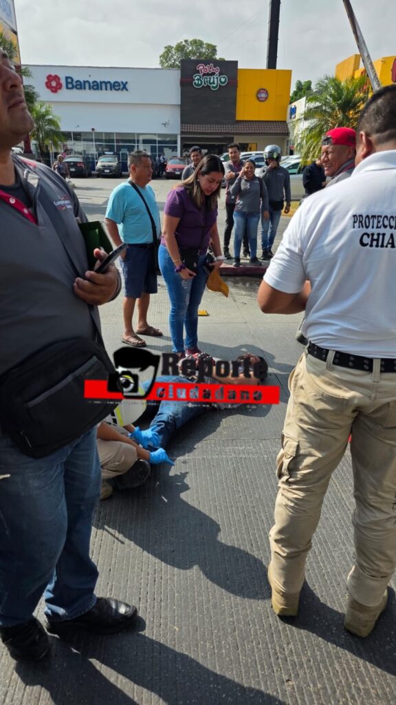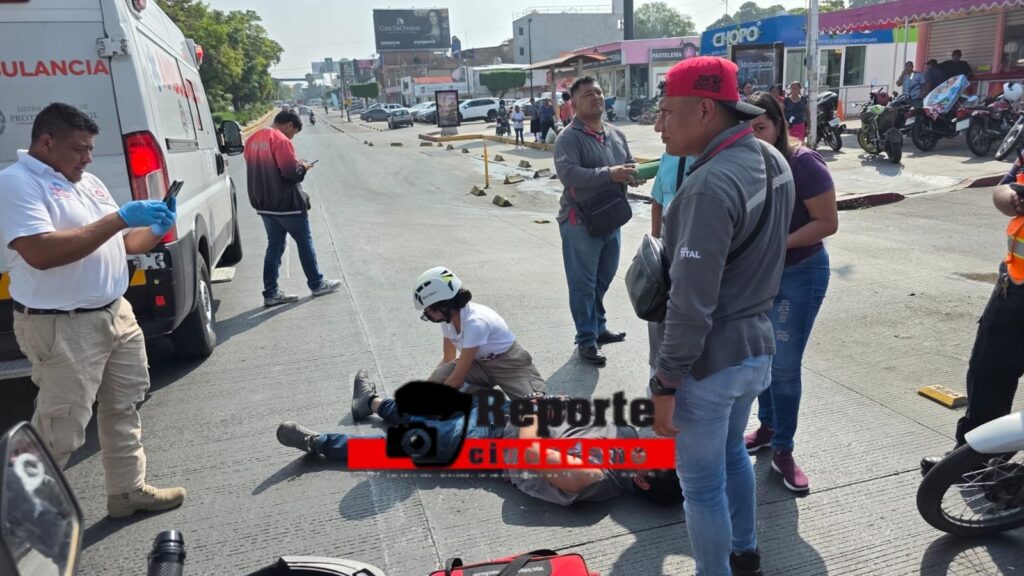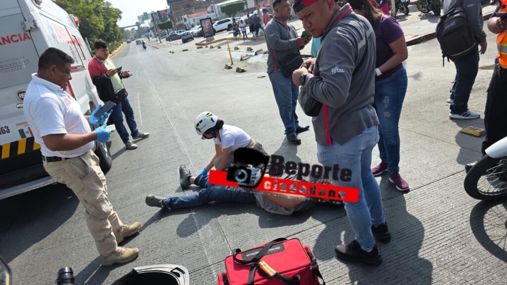 Agencia ReporteCiudadano, 18 de noviembre del 2025. Tuxtla Gutiérrez.- Este martes por la mañana un motociclista resultó herido al derrapar su unidad en el Bulevar Ángel Albino Corzo, en la zona Oriente de Tuxtla Gutiérrez.