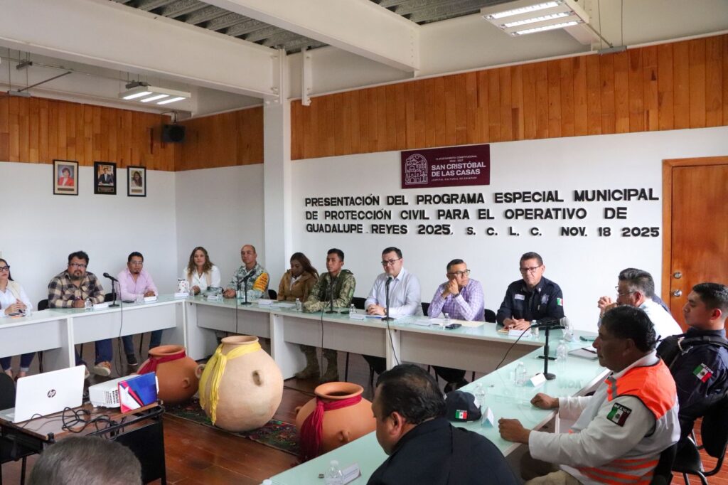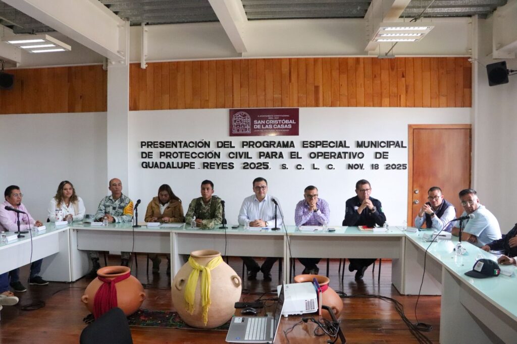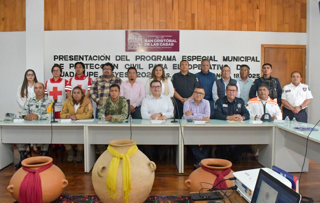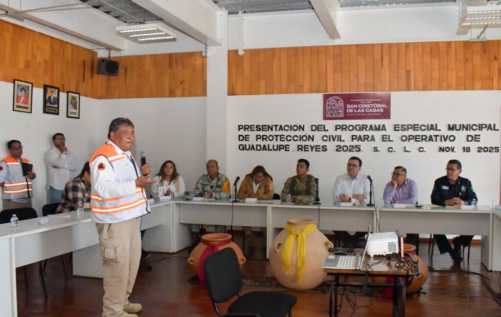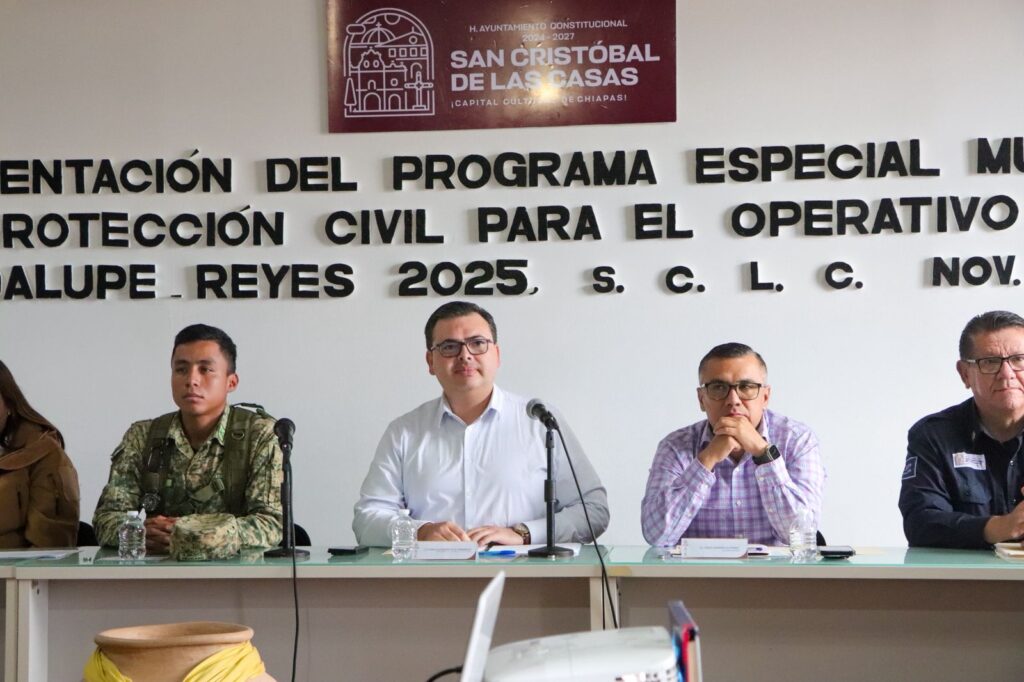 San Cristóbal de Las Casas, 19 de noviembre de 2025.- El Ayuntamiento de San Cristóbal presentó el Programa Especial Municipal de Protección Civil para el Operativo Guadalupe–Reyes 2025, encabezado por el síndico municipal, C.P. Jorge Alejandro Ruiz Hernández, en representación de la presidenta municipal, Mtra. Fabiola Ricci Diestel. En su mensaje, invitó a la ciudadanía a participar con responsabilidad durante esta temporada de celebraciones, subrayando la importancia de la prevención y el trabajo coordinado para garantizar fiestas seguras, en armonía y paz.