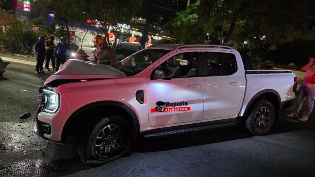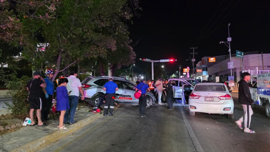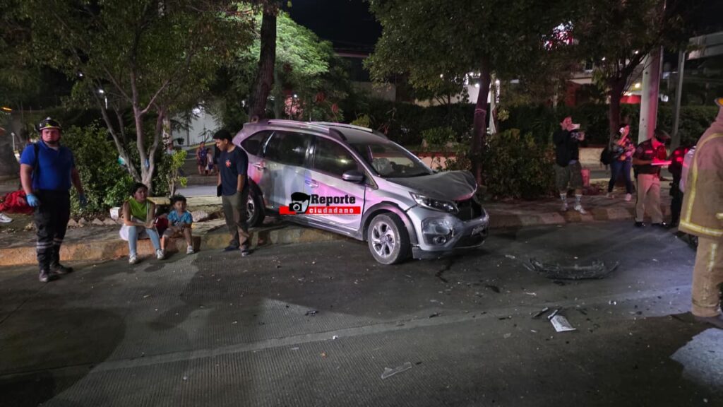 Esto ocasionó que se subiera al camellón central y se impactara de lleno contra una Honda BRV y un vehículo Suzuki que esperaban el cambio de semáforo.