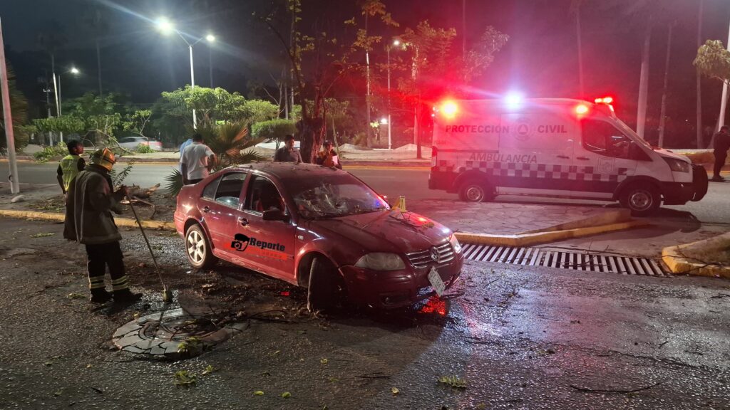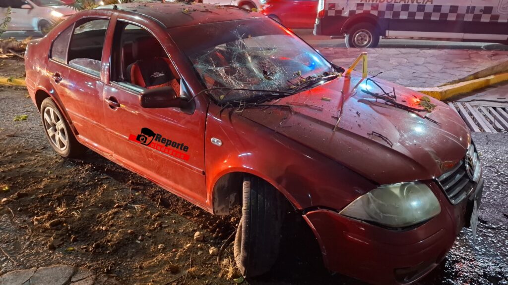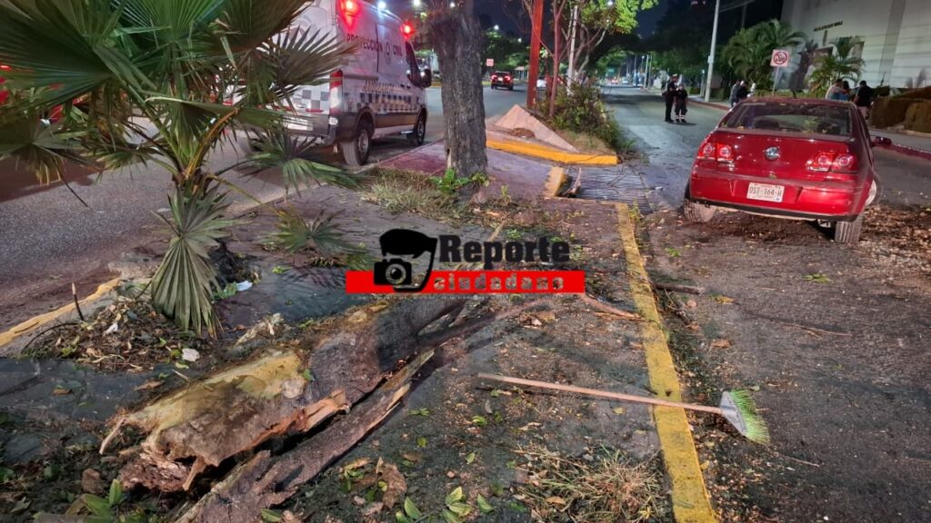 De manera repentina comisionaron y por el golpe el Jetta salió proyectado, subió al camellón central y se estrelló contra un árbol el cual terminó derribado.