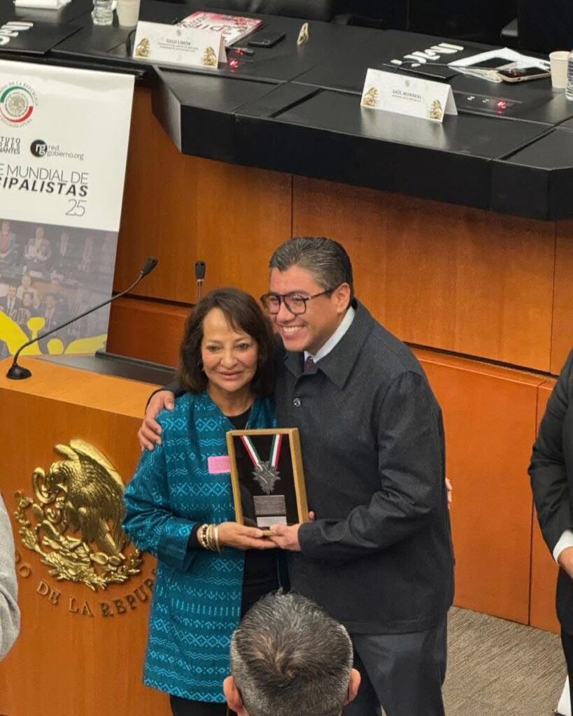 Felicitamos con gran orgullo a nuestra Presidenta Honoraria del DIF Municipal de San Cristóbal de Las Casas, C. Bertha Guadalupe Diestel Alfaro; quien recibió el nombramiento como Vicepresidenta Internacional del Instituto de Mejores Gobiernos y la Medalla al Mérito Ben Lamat 2025, otorgados en el marco de la Cumbre Mundial de Municipalistas.