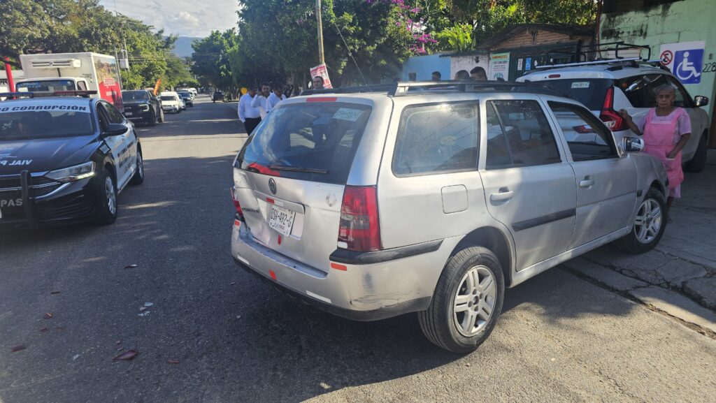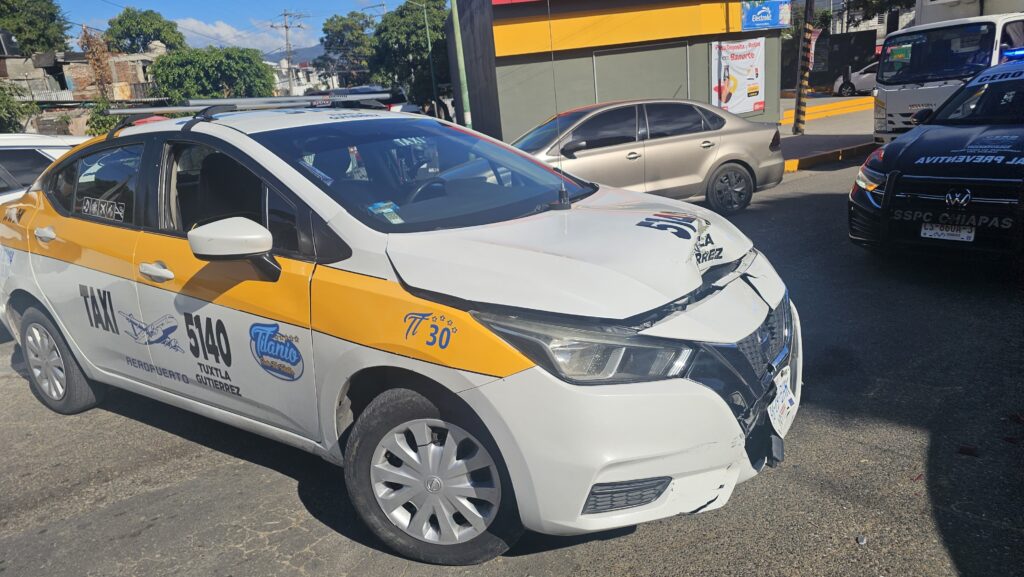 Sin embargo, una unidad Nissan en la modalidad de taxi salía de la calle Manuel Velasco Suárez en el sentido de Oriente a Poniente e impacto al Pointer en la parte trasera.