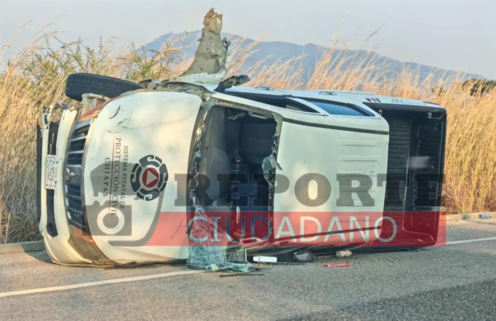 Tuxtla Gutiérrez. Una camioneta propiedad de protección civil del estado y una motocicleta protagonizaron un fuerte accidente en el nuevo libramiento sur a la altura del km 14 en el tramo rumbo a Berriozábal.