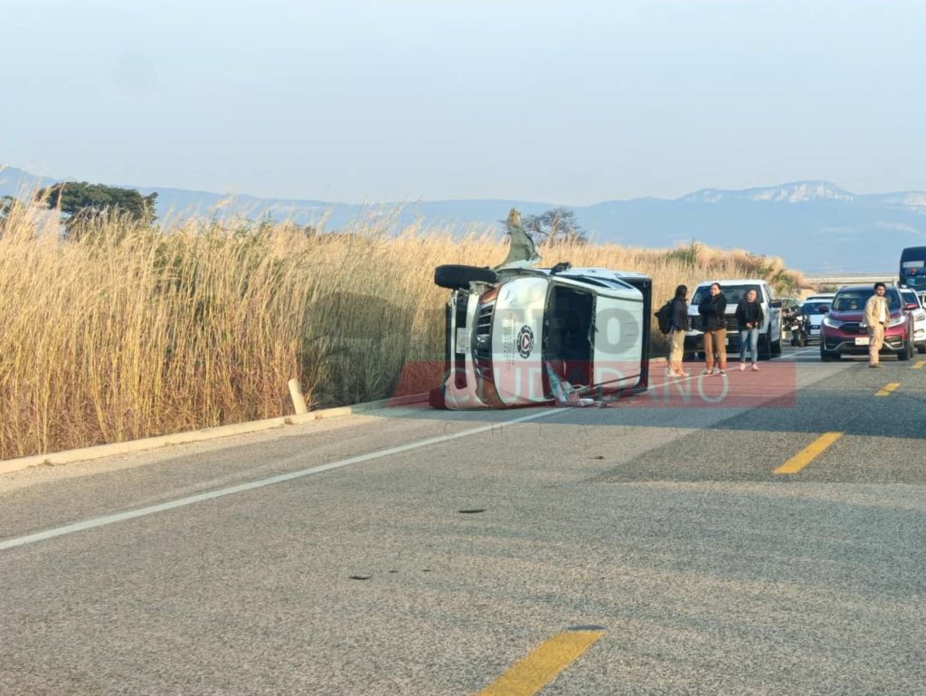 De acuerdo a las primeras indagatorias la pick up oficial perdió el control y chocó por alcance, posteriormente volcó.