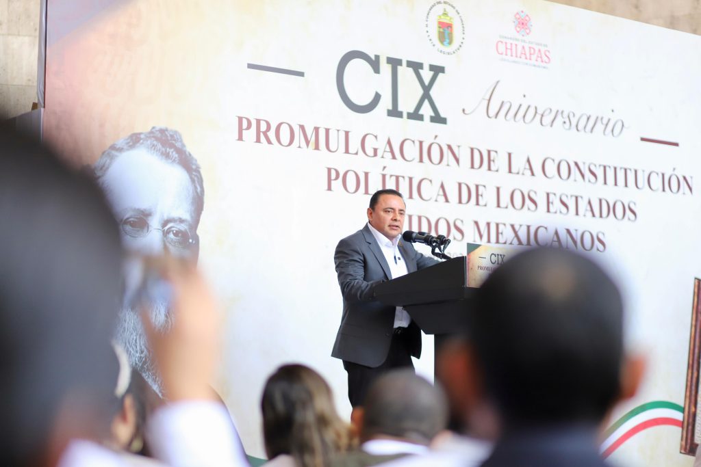 5 de febrero del 2026. En el marco de la ceremonia cívica conmemorativa por el CIX aniversario de la promulgación de la Constitución Política de los Estados Unidos Mexicanos, encabezada en representación del gobernador Eduardo Ramírez Aguilar, por la secretaria general de Gobierno, Dulce María Rodríguez Ovando; el magistrado presidente del Poder Judicial del Estado de Chiapas, Juan Carlos Moreno Guillén, participó como orador oficial, destacando la vigencia histórica, jurídica y moral de nuestra Carta Magna.